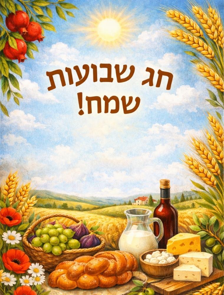 תמונת חג שבועות שמח ברכה מעוצבת